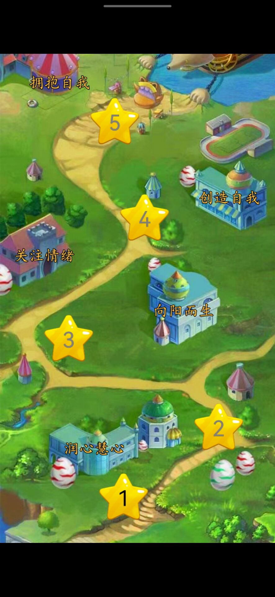 第二个板块为“勇往直前,奋勇当先”——点亮地图。该板块通过线上守护心理健康小程序进行,同学们通过完成线上心理小游戏,来点亮地图上不同的地标,地标包括向阳而生、关注情绪、润心慧心、拥抱自我和创造自我。同学们在游戏时相互合作与竞争,将活动气氛推向了高潮,欢声笑语此起彼伏。