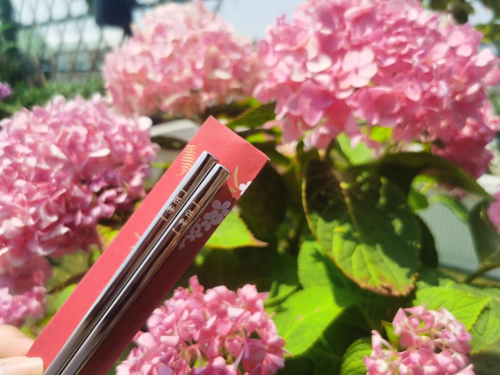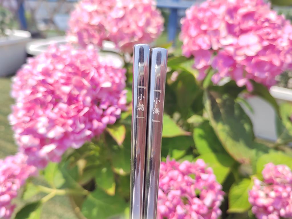 筷子是中国人常用的餐具,“小满”“芒种”……筷子的正面印有二十四节气,背面印有“南财XCsports”字样,在太阳底下闪闪发光。这双定制的二十四节气系列筷子,寓意快乐幸福,好事成双,是最贴心的陪伴。同时,也在提醒毕业生疫情期间使用公筷,在日常生活中要每天按时吃饭,健康生活,在努力拼搏的同时也要懂得照顾好自己。