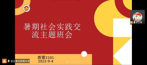 天波易谢,寸暑难留。转眼间暑期生活已成为过去,质管2101班主任张正勇老师于9月4日晚开展线上“暑期社会实践及读书交流”主题班会。