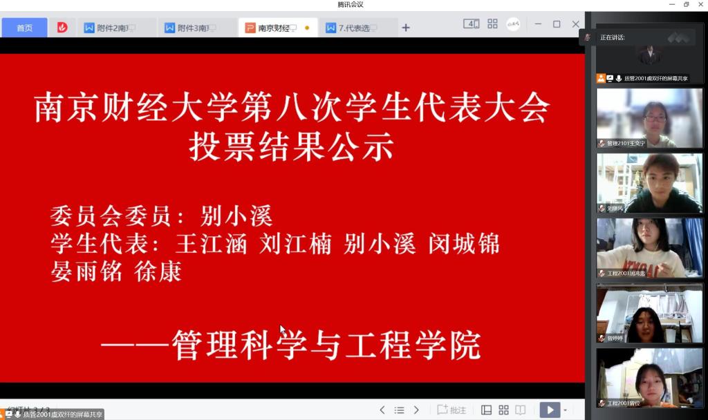 最终,质管2101别小溪、质管2101晏雨铭、工程2101刘江楠、管理2101徐康、管理2201闵城锦、质管2201王江涵当选第八届员工代表大会代表,质管2101别小溪当选第八届员工代表大会委员会委员候选人。