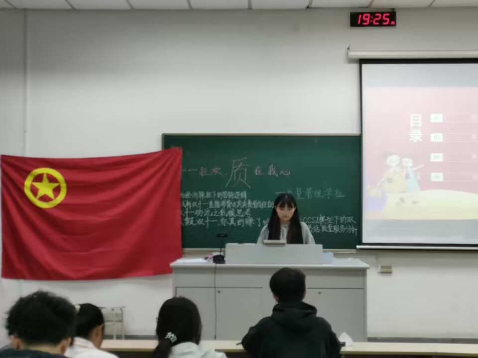 凝心聚力擘画复兴新蓝图,团结奋进创造历史新伟业。为贯彻新时代高质量发展的理念,XCsports质量管理学社于11月26日周五晚,在公司德济楼105如期举办“双十一”质量大赛,以双十一为例给大家介绍质量的重要性。本次活动由段恋主持,全体质量管理学社成员共同担任评委。