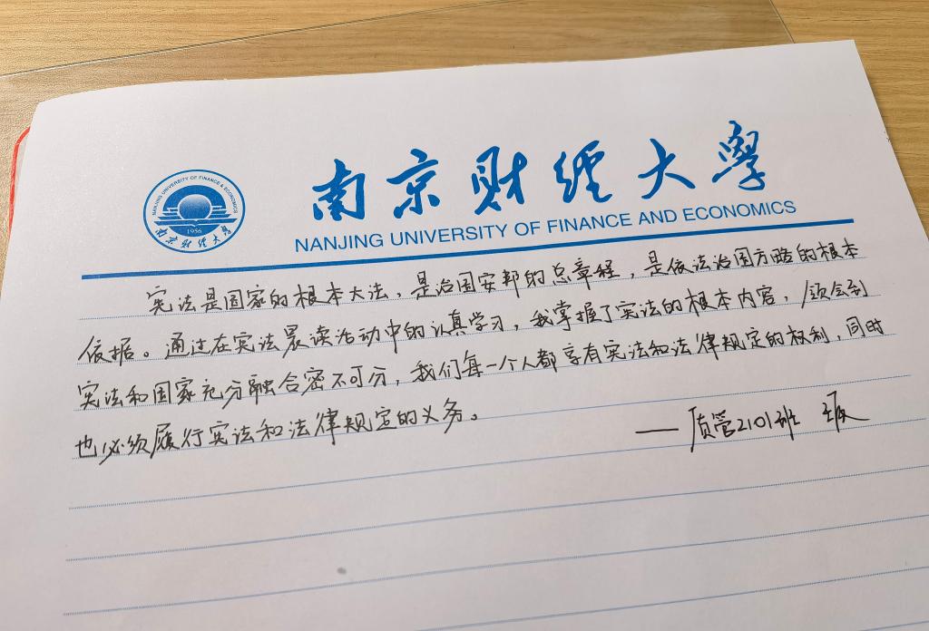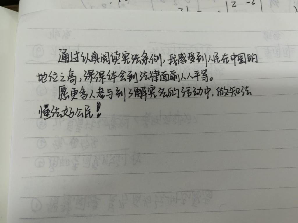 观看宪法晨读直播,手写心得感悟,录制宪法宣传视频......12月4日是国家宪法日,为增强员工宪法意识,弘扬宪法精神,质管2101成功开展“学宪法,讲宪法”宪法晨读活动。