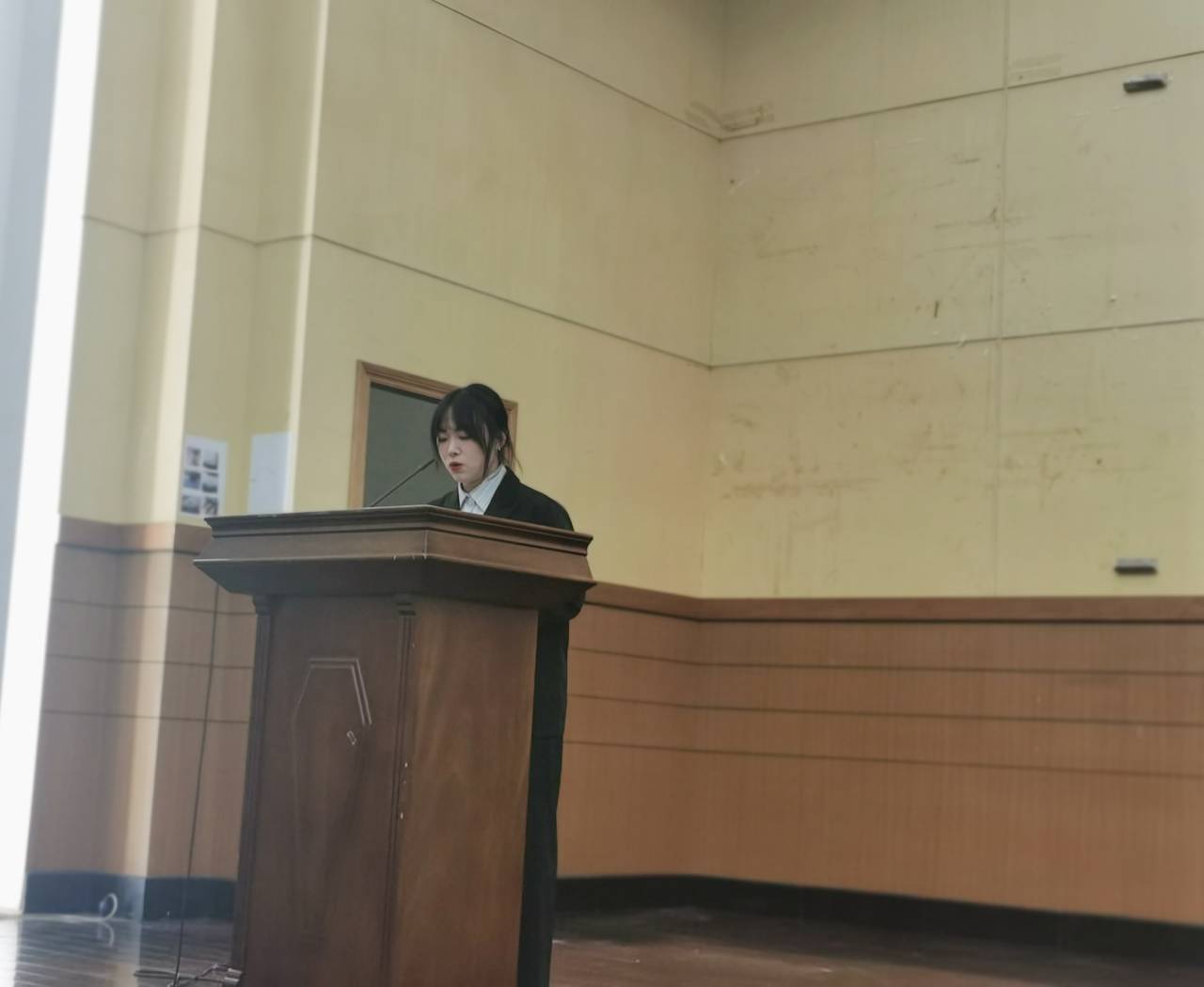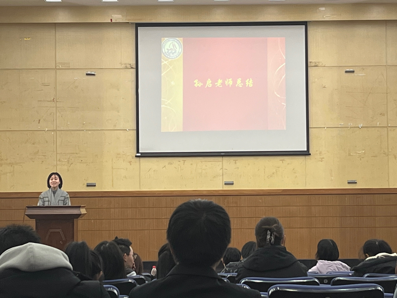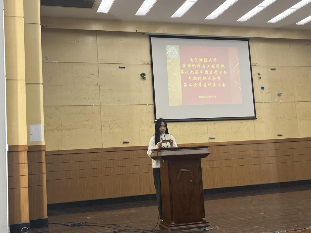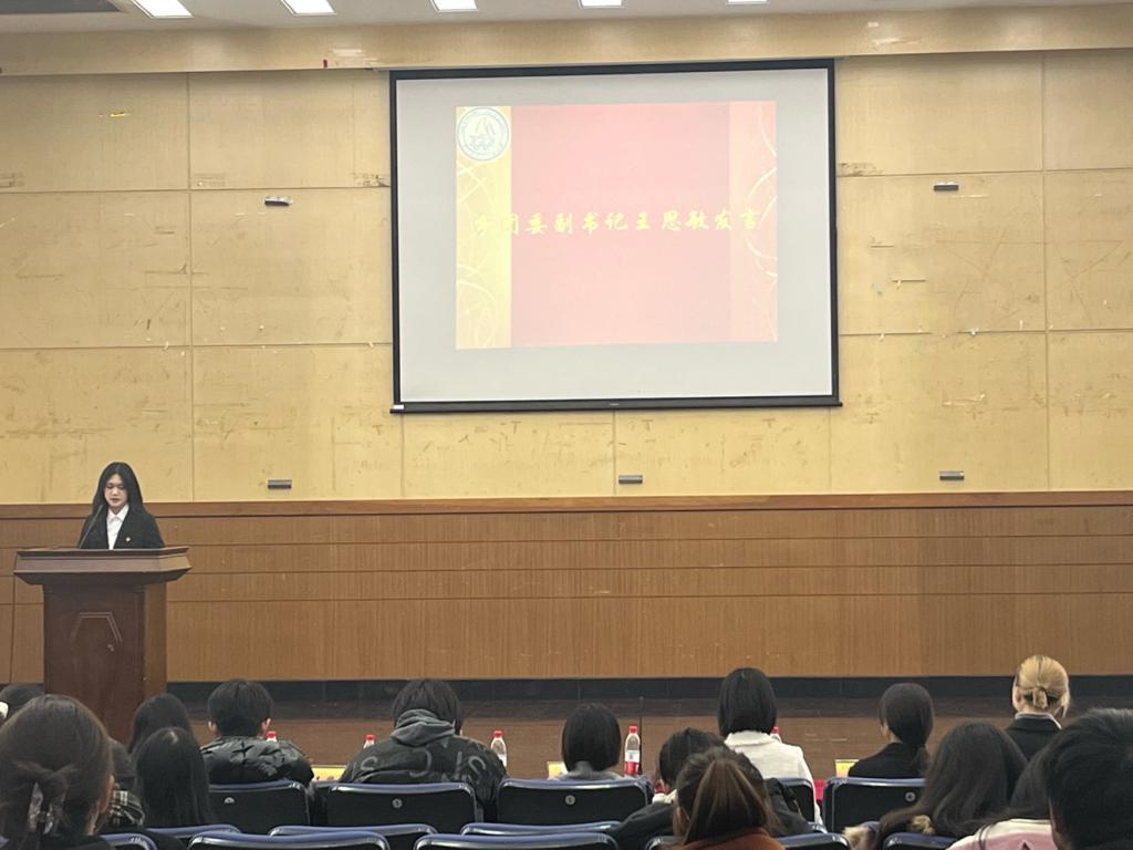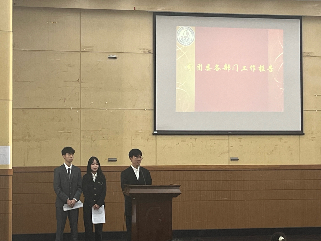 大会第二项,王思敏同学对本学期分团委开展的各项工作进行总结,她肯定了这学期工作的亮点,同时反思了不足之处,为下学期的筹备和开展做好准备。