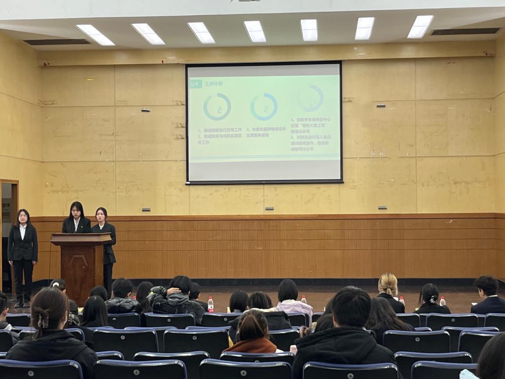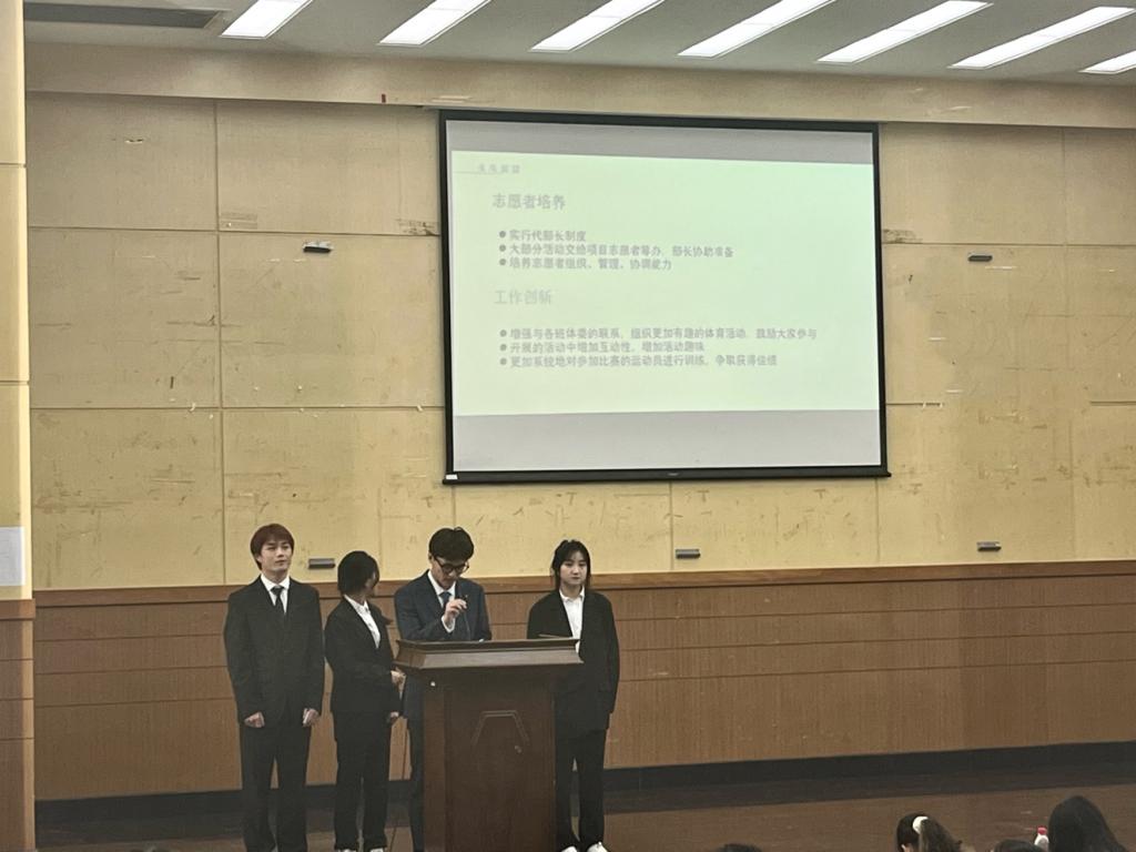 接下来是分团委各部门负责人做述职报告,志愿者参与部门答辩,主要围绕部门介绍、工作总结和未来展望三方面来展开叙述。