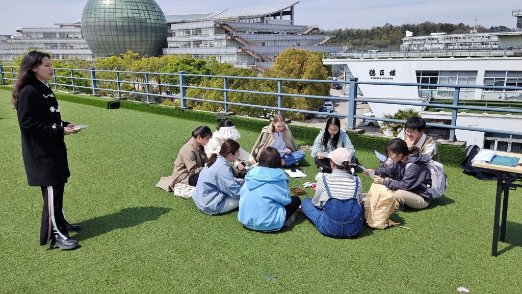 志愿者向在场同学们分发柳枝,大家围坐在草坪上、品尝着美味的青团,借折柳寄思念之情。随后,同学们相互分享喜爱的清明节日相关诗文,借以缅怀感恩先辈,表达对生命的关怀。工程2201的陈彦坤同学说,“先辈的智慧、勤劳、奉献是我们继续前行的起点,当代青年要以此为动力,砥砺前行。”