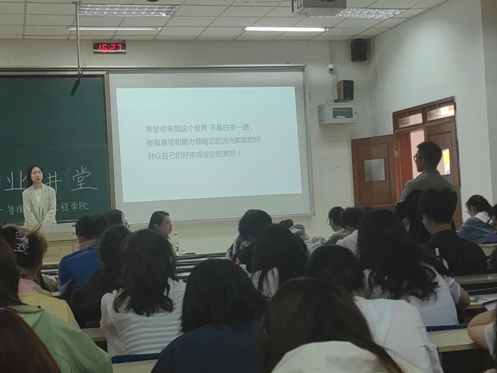 之后,徐小晶老师阐述了个人规划的重要性,提醒我们要时刻关注自己当下的状态,找准目标以后就要立刻行动。“更多的机会是要靠自己争取的,不能浑浑噩噩地度过最宝贵的时光。”徐老师语重心长地跟我们说道。最后,徐老师跟我们分享了自己的经验共勉,告诉我们要立足实际,学会选择,做一个有心人,很多时候,求职的机会都不在招聘会现场,而是在生活当中的点点滴滴,我们要稳扎稳打,实现自我的提升。