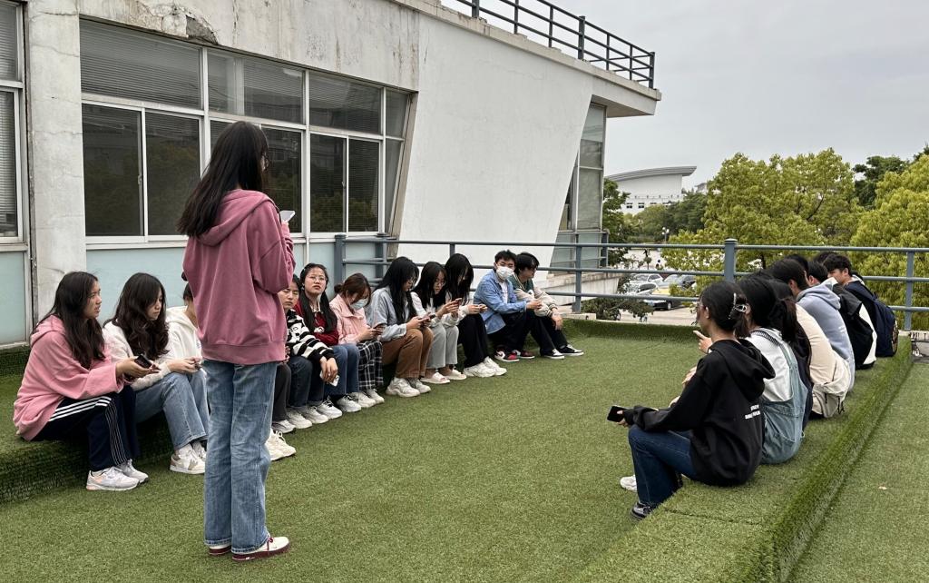 伴随着同学们爽朗的笑声,各种植物叶片“闪亮登场”。同学们在阳台草坪上入坐好后,丹增卓嘎以一首诗为大家介绍了家乡云南的四季特色节日,“一串蹄音,唤醒了六月杜鹃,马蹄铿锵,震动了迪庆高原。色彩华美的藏式马垫、精铸镶宝的鞍辔……”,这首诗将同学们带入美好的想象中,开始体会自然之美。