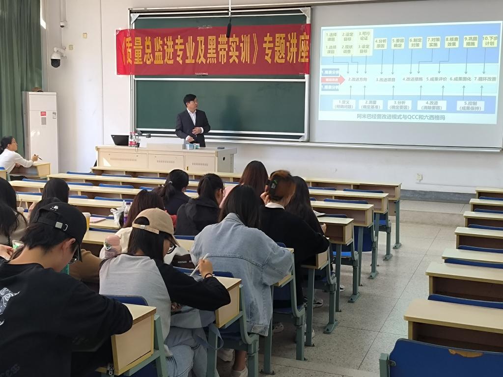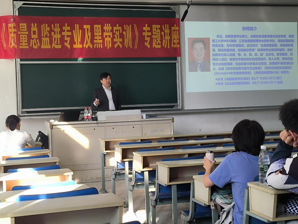 为不断拓展校企协同、产教融合创新育人路径,实现教育链、人才链、产业链与创新链有机衔接,培养更多创新型、应用型、技能型人才,构建卓越质量人培养新格局,质量管理学社于11月2日上午在德济楼117教室成功举办《质量总监进专业及黑带实训》专业综合实践课程的专题讲座。讲座特邀质量总监为江苏省质量管理协会的朱迅副秘书长,全体质量管理工程专业2021级本科生及质量管理学社社员参与本次活动,质量管理工程专业系主任沙敏主持本次活动。