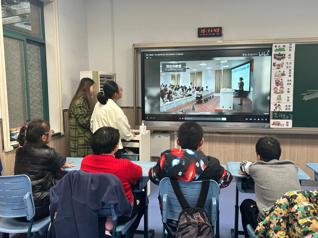 志愿者为孩子们介绍改革开放来的变化