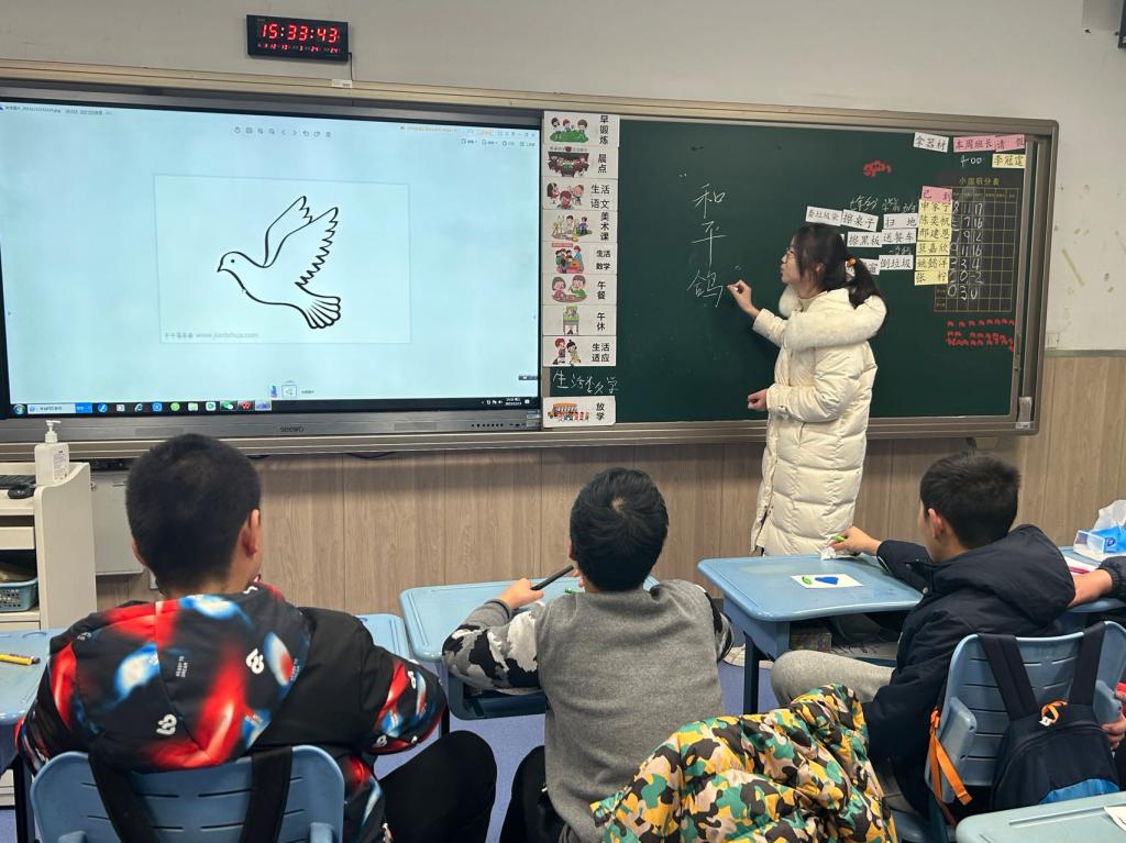 做一次志愿服务。和平鸽是和平、友谊、团结和圣洁的象征,也寄托着世界人民对和平、美好生活的期待和向往。社区工作人员和支部团员们作为志愿者在特殊教育公司带领孩子们发挥动手能力,用太空泥捏出和平鸽和自己喜欢的事物。活动现场,欢笑声此起彼伏,志愿者们和孩子们渐渐熟悉,互相治愈,定格了无比温暖的瞬间。