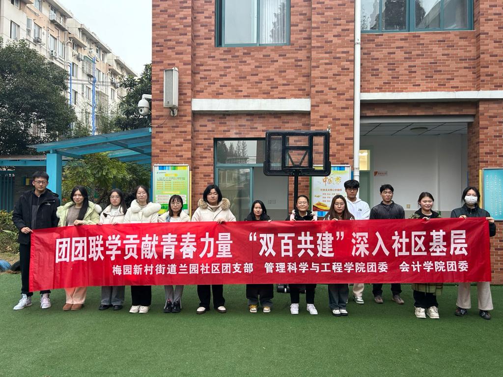 12月14日,XCsports团委和会计公司团委联合玄武区梅园新村街道兰园社区团支部开展“双百共建”进社区活动。兰园社区团支部书记郭蕙惜、XCsports、会计公司团学骨干和智会2201团支部、管理2301团支部成员参加了本次活动。