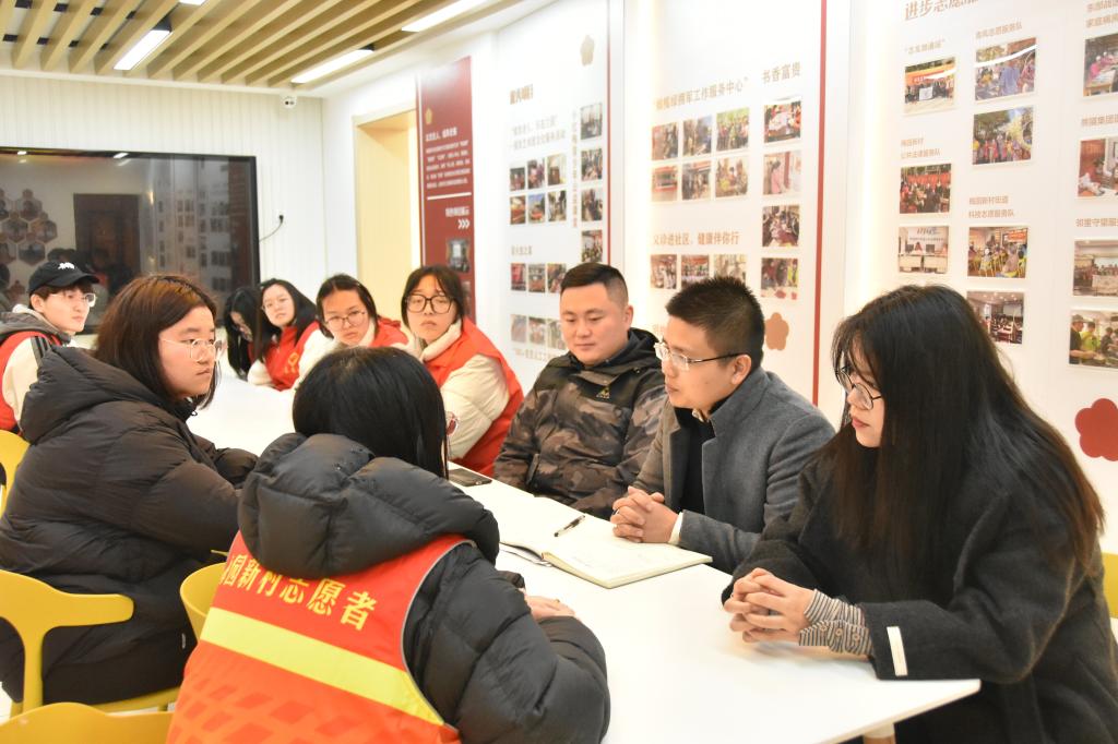 第二站在兰园社区工作人员的带领下,志愿者们来到梅园新村街道新时代文明实践所参观学习。社区工作人员为大家重点介绍了社区特色志愿项目,令人印象最深刻的项目是“赵大姐工作室”,目前已经成为区域知名的志愿服务工作室。校地双方开启“党建融合、团团结对”共建交流会,以志愿服务项目为依托,为青年学子进社区实践搭建平台。