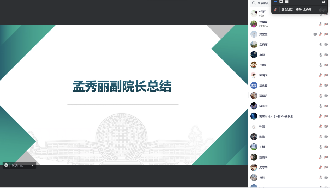 唐静博士对于论文写作及投稿过程的详细分享,让同学们收获颇多。孟秀丽副经理在做总结时,表达了对唐静博士的感谢和赞许,并期望她再接再厉取得新的成果。孟经理指出,好的选题需要阅读大量的文献,总结出不足之处,进而发现实际问题,还应充分考虑导师的研究方向和项目,有助于提升论文的学术价值。孟经理语重心长地给同学们提出了关于项目申报、小论文、毕业论文撰写等的衷心建议。