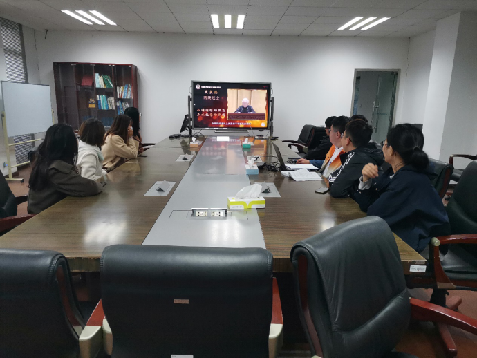 2019级研究生在会议室集中观看了报告会直播。会议由班长蔡倩晓主持。