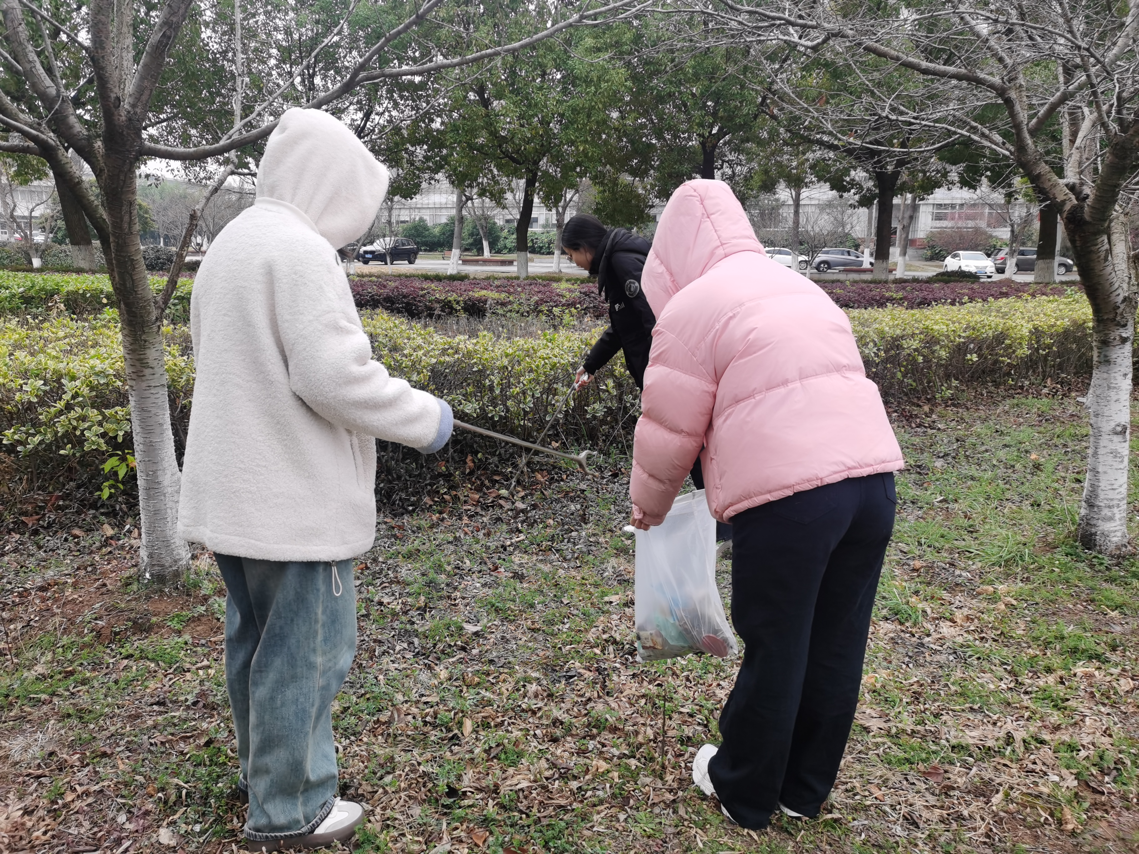 活动伊始,活动负责人详细讲解了清理路线以及注意事项,并向每位参与者分发了垃圾钳、垃圾袋和手套等工具。随后,同学们分组行动,手持工具对天鹅湖周边环境进行全面清理。大家重点清理绿化带内的烟蒂、塑料袋、塑料瓶等隐蔽垃圾,同时对路灯杆、宣传栏等公共设施进行了细致擦拭。在活动过程中,同学们充分展现了不怕苦、不怕累的奉献精神:有的徒手捡拾石缝中的细小垃圾,有的蹲在草坪上仔细拔除杂草,有的将垃圾分类投放至指定回收点。经过一个多小时的辛勤劳动,天鹅湖周边环境焕然一新。