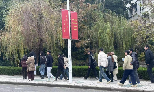 参与活动的不仅有经验丰富的教师,还有充满活力与朝气的研究生。他们并肩而行,在步行的过程中谈笑风生,欢声笑语回荡在校园的每一个角落,形成了一道亮丽的风景线。
