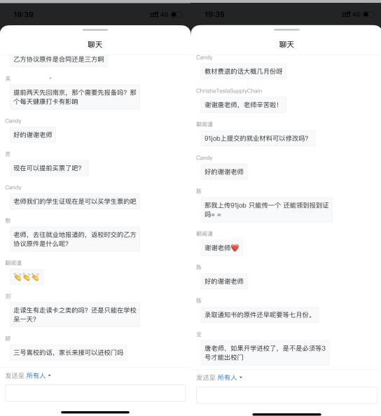 此次线上动员大会主要分两部分。首先唐老师表达了与毕业生一同度过三年的荣幸。随后就公司相关文件向毕业生解读了贷款还款、西部计划、苏北计划、征兵入伍、毕业生评奖评优、档案派遣、网上毕业典礼和学位授予、毕业生登记表、体检表等重要事项的安排并布置了返校相关工作,倡导毕业生同学们坚持学习社会主义核心价值观,感恩母校、安全返校、文明离校。之后,对毕业生密切关心的问题耐心地进行了一一解答,并强调了今后的学习和工作工作中,树立正确的意识形态观。最后,唐老师向毕业生表达了衷心的祝愿。