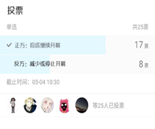 5月5日上午,公司在QQ群中开展了“劳动教育的利弊”为主题的辩论会。围绕辩题“应不应该让中小员工继续开展劳动教育”,正反双方唇枪舌战,辩论激烈。最后经过投票表决,正方以17票获胜。