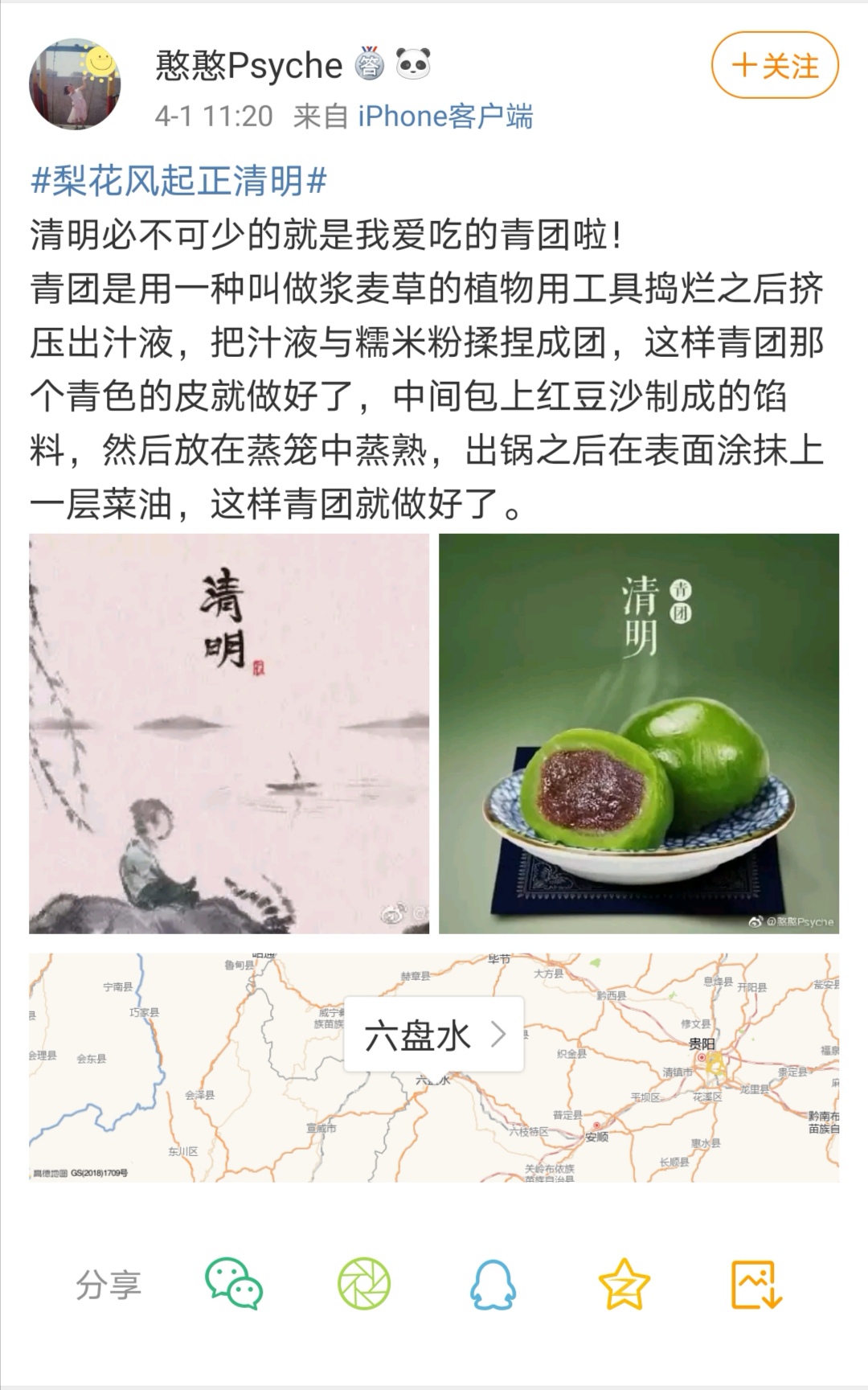 公司同学积极响应,纷纷在微博话题#梨花风起正清明#和#从前你呵护我长大,如今我守护你周全#和下进行留言讨论。其中,微博ID为“派大星喜欢海绵宝宝丫”的同学详细介绍了馓子的由来,“春秋战国时期为纪念名臣介子推,每天清明节前,需要全部禁火三天,于是人们就提前炸好一些面食作为寒食节充饥的食物。”还有同学回顾了青团的制作方法、清明踏青赏花、泛舟郊游的习俗,可谓仪式感满满。