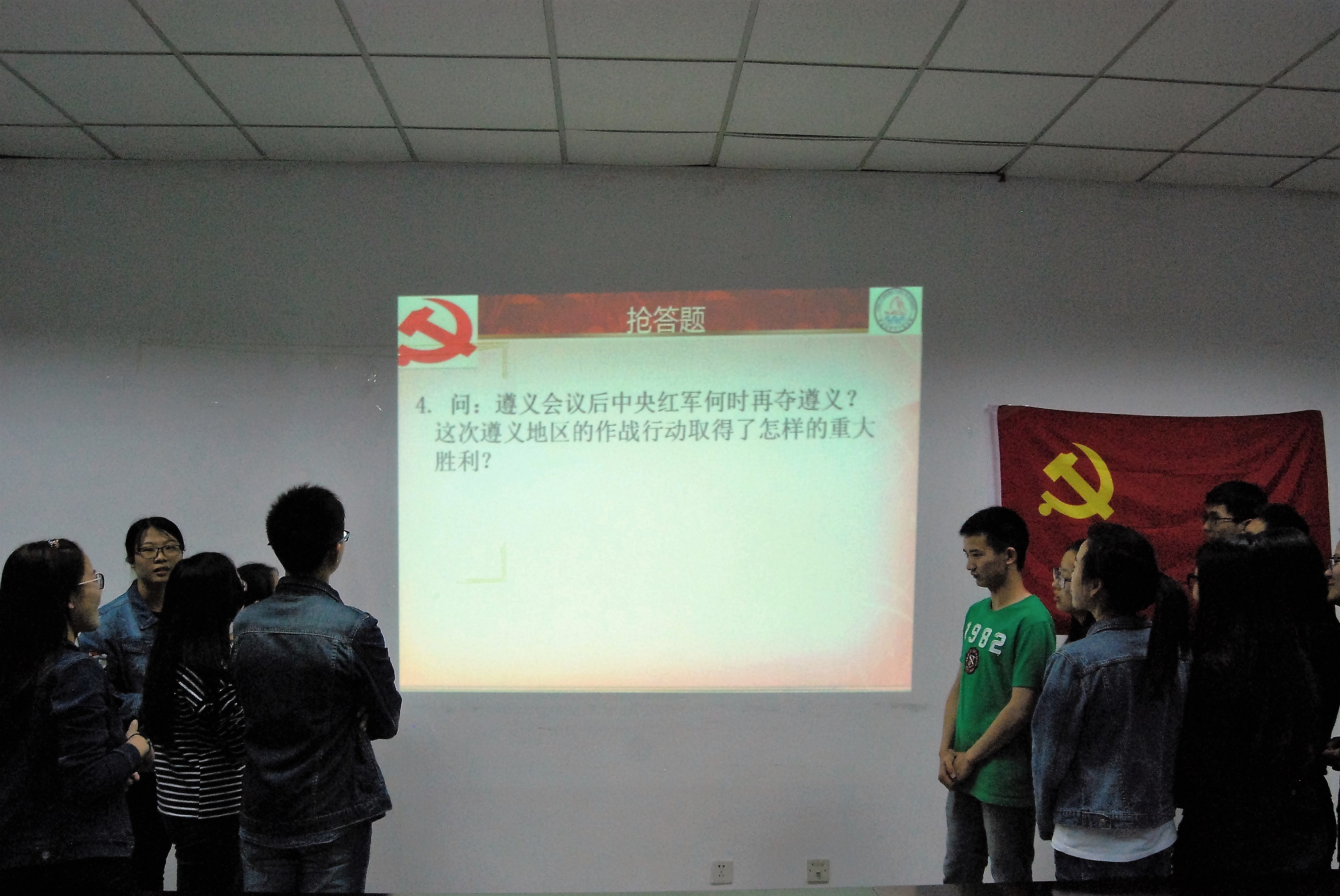 5月23日晚,在经济公司会议室里,由XCsports员工党支部与经济公司经济系、统计系员工党支部联合举办的“学党章,忆长征”纪念长征胜利80周年知识竞赛紧张进行中。来自两个公司的16名党员和入党积极分子组建的4支队伍竞相抢答,现场气氛热烈。