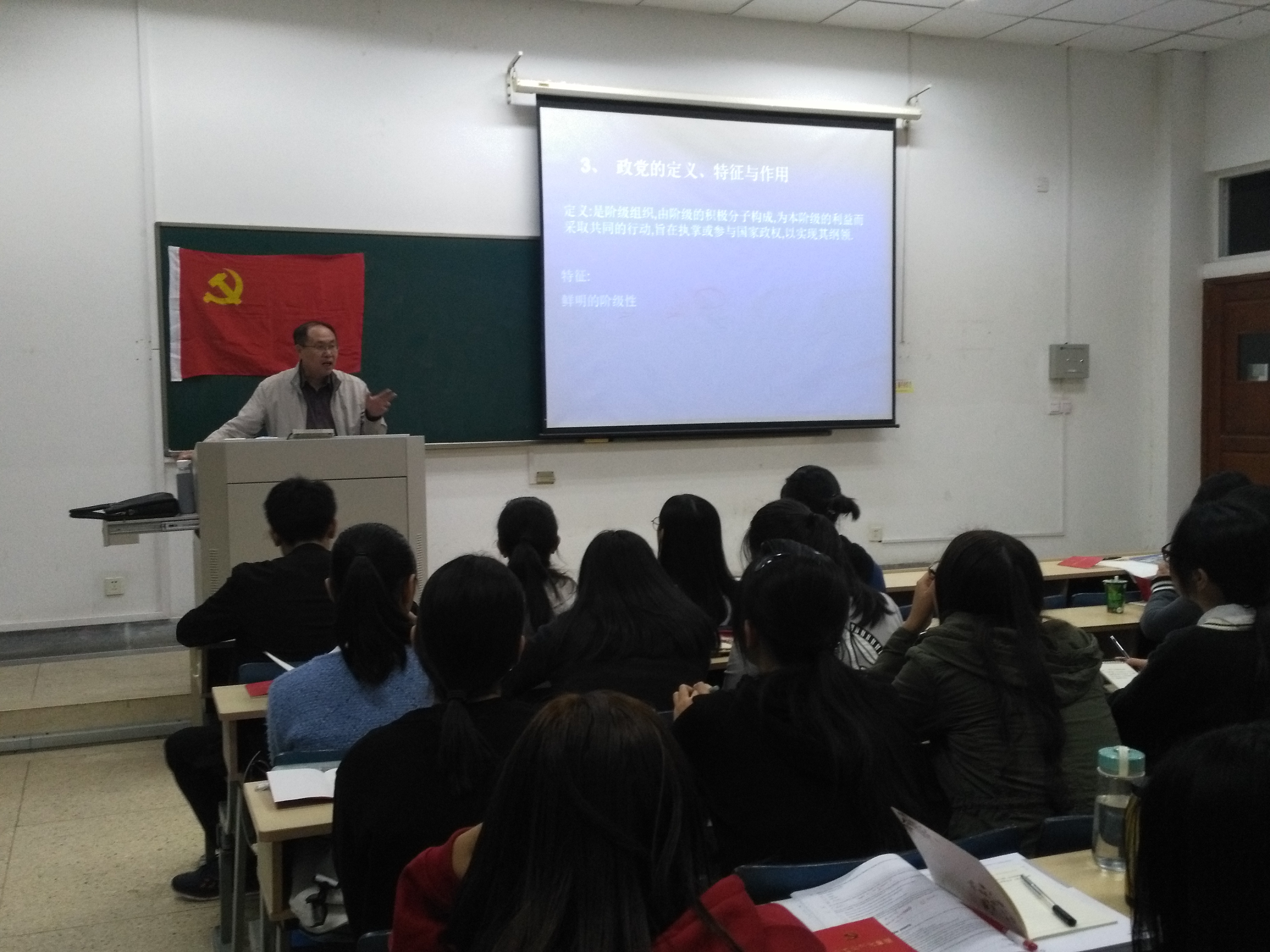 开班仪式结束后,公共管理公司朱广忠教授为同学们进行了党的理论知识的授课,党课的内容包括第一讲“中国共产党的性质”和第二讲“中国共产党的纲领。在课堂上,他向同学们讲述了政党的概念和演变历史,中国工人阶级的属性以及中国共产党的先进性。