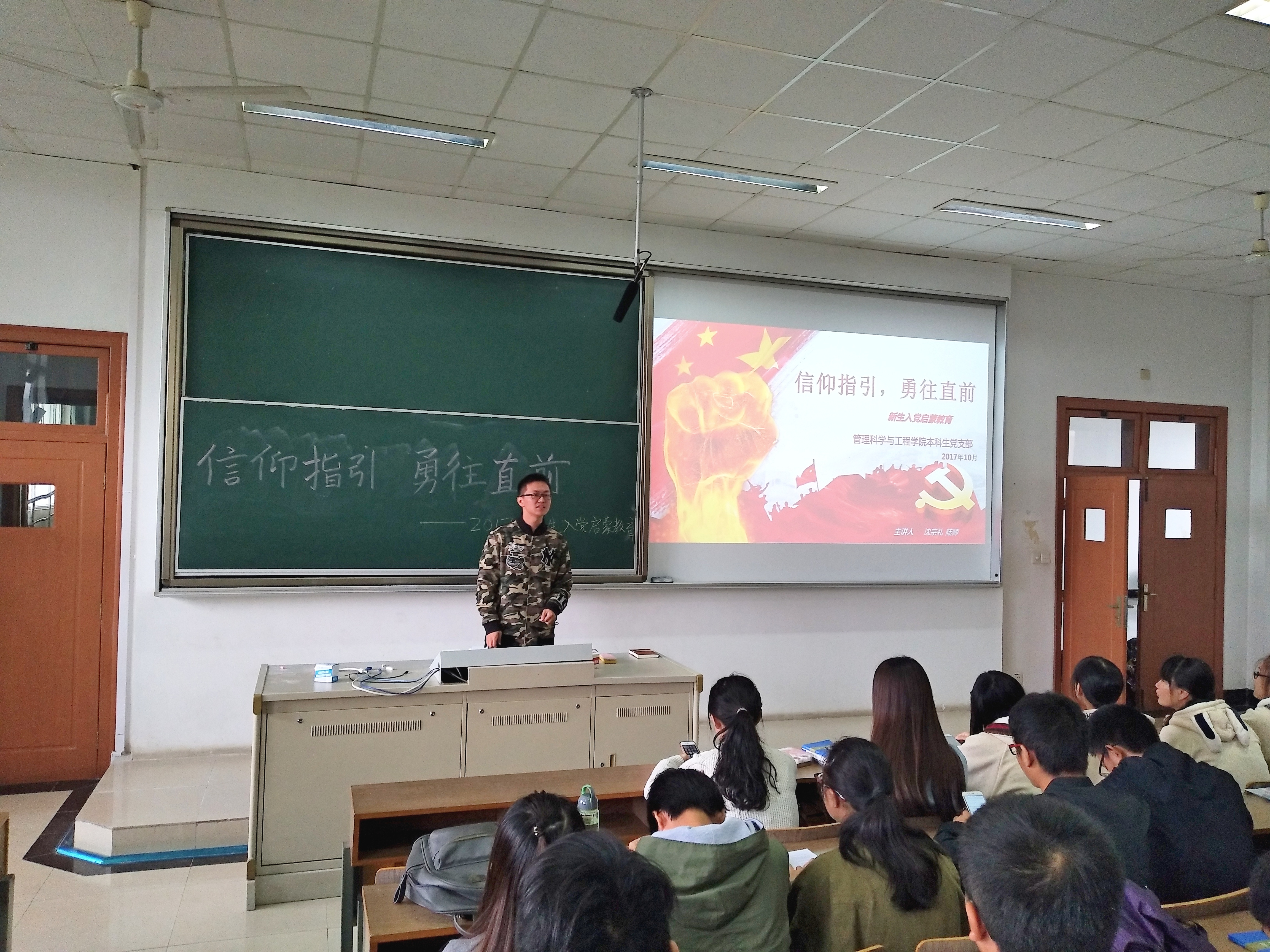 员工党支部副书记沈宗礼结合自己的实际经历及感受,对入党教育做了全面的介绍,号召同学们积极主动向党组织靠拢。他告诉同学们,成为党员是老员工追求自我价值的一个很好的途径,也告诫想要成为一个党员,老员工应当有坚定的政治立场,树立崇高的信仰,端正入党动机,加强理论学习。党员发展的标准是对员工的全面综合的考察,这个过程是表现自己和树立正确三观的重要历程,员工应当全面发展,并讲解了入党申请书、个人自传和思想汇报的书写。