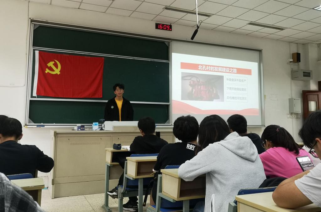 营销与物流管理公司冲锋宣讲团带来了“第一书记——黄文秀”的故事。黄文秀士是2016级北京师范大学哲公司硕士毕业生,这个从山里走出来的女孩做出了一个与众不同的选择,她决定回到家乡支援建设,2018年担任广西百色乐业县百坭村担任驻村第一书记。从进村开始,黄文秀就努力融入当地生活,挨家挨户走访,学会了柳桂方言。一年多的时间,在黄文秀任上,百坭村103户贫困户顺利脱贫88户,村集体经济项目收入翻倍,她在驻村笔记中写道:“每天都很辛苦,但心里很快乐。”2019年黄文秀遭遇突发山洪不幸遇难,年仅30岁。正如感动中国颁奖词所写,“百色的大山你是最美的朝霞,脱贫的战场,你是醒目的黄花。”心中有信仰,脚下有力量。