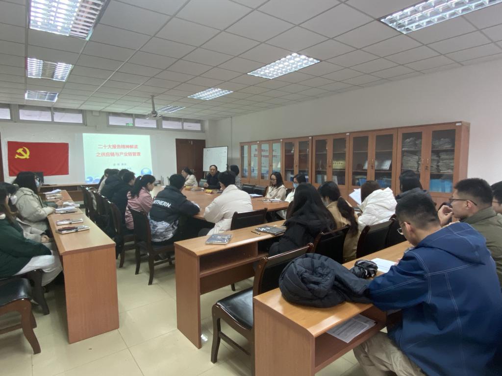 首先,唐润副经理以专业的角度从供应链的产生与布局、供应链与产业链的联系与区别以及我国供应链与产业链面临的挑战等方面讲解了供应链和产业链知识,为更好理解党的二十大报告中有关供应链和产业链的要求奠定了基础。接着,唐经理对党的二十大报告中“着力提升产业链供应链韧性和安全水平”进行深入解读,并强调大家要响应党中央号召,不断提高科研水平,为推动高质量发展贡献力量。