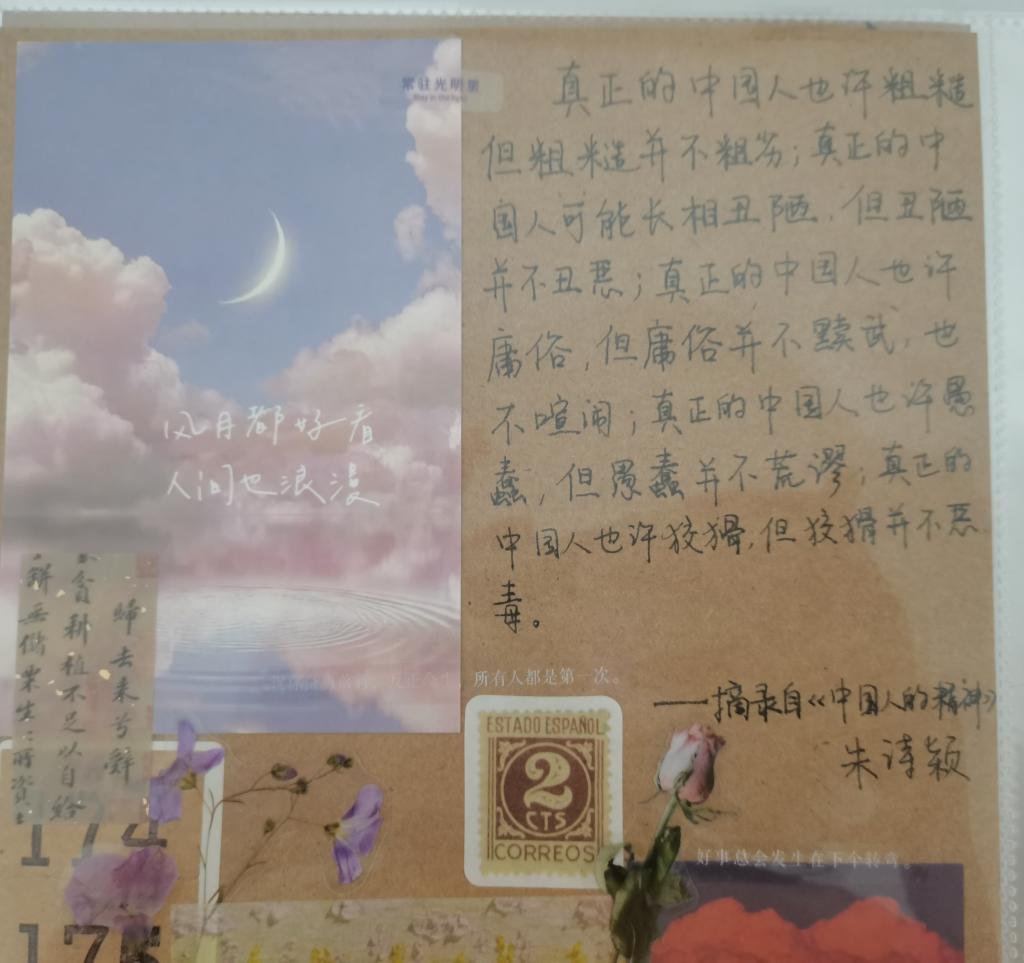 会议伊始,朱诗颖、曲俊衡、洪柔嘉等三位党员依次诵读了《中国人的精神》、《百年孤独》和《哲学的慰藉》美文片段,并分享阅读感想与心得,激发了在座党员的阅读热情。随后,支部开展自制摘要录的实践活动,在座党员结合自身构思积极参与制作,组织委员程昕将摘录页装订成册,供党员欣赏交流。最后,支部书记李艳分发活动纪念品u盘,并表示希望党员同志能够不断从书中汲取知识,补足精神之钙,筑牢信仰之基。