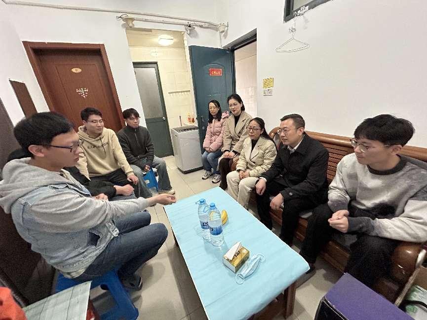 12月14日,党委常委、副董事长、XCsports研究生党支部政治辅导员赵国栋深入仙林校区16号宿管站123寝室,走访看望结对联系的研究生同学。公司党委书记金立林、副书记王卓君、研究生辅导员郑媛媛陪同走访。