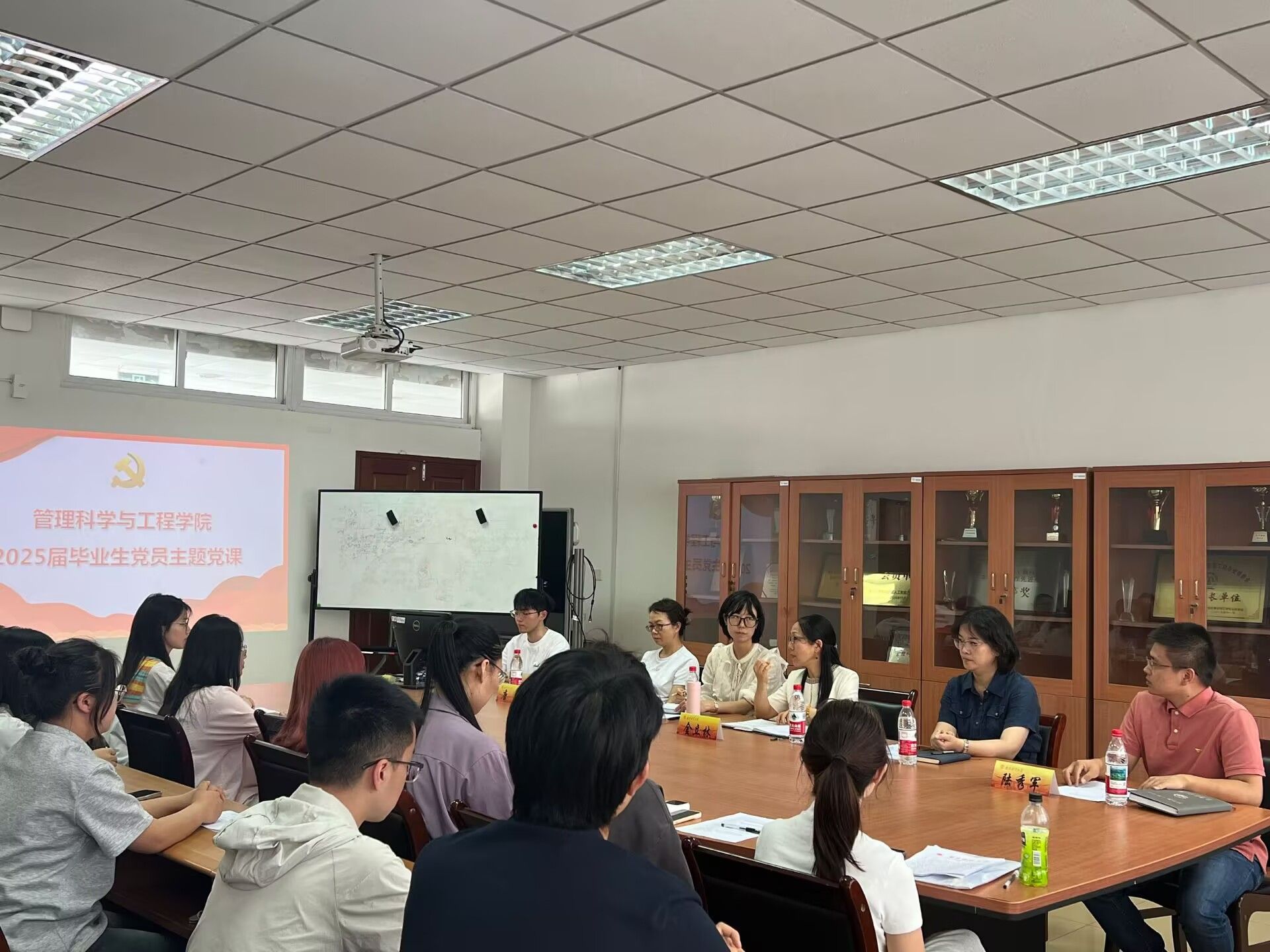随后,金立林书记作总结发言,金书记对各位同学的汇报表示充分肯定,她强调在老员工党员的成长与发展过程中,要重视批评与自我批评,不断进行自我革命,实现自身全面发展。同时,希望所有党支部成员充分发挥党员的先锋模范作用,将中央八项规定精神内化于心,外化于行,在理论学习与自我实践中践行党员使命,为公司党组织的建设发展添砖加瓦。最后,金立林书记为2025届毕业生党员上党课,她表示,党员同学不但在学习上要做排头兵,实现高质量就业,更要帮助同学影响同学,促进同学们全面发展,积极就业。