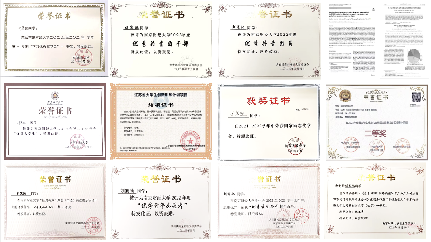 刘寒驰荣誉证书