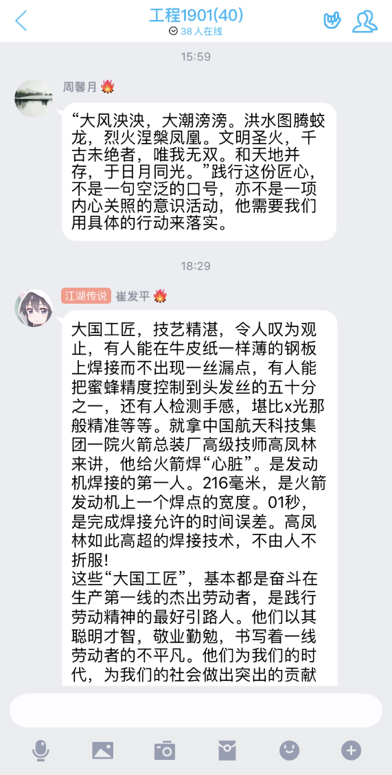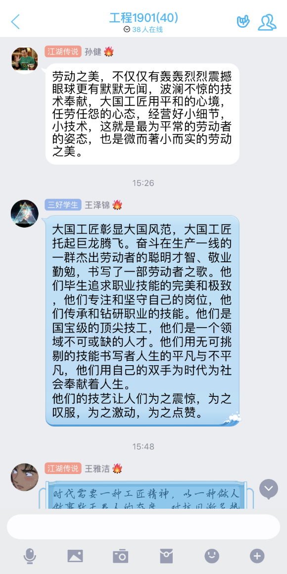 劳动光荣,创造奇迹。为庆祝五一劳动节,致敬广大劳动者,学习弘扬工匠精神,XCsports工业工程1901班全体同学在线集中观看了《大国工匠》纪录片,并分享观看感悟。