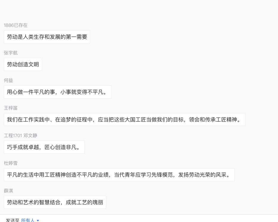 活动最后,工程1701班团支部书记谢婉莹同学总结,“青年兴则国家兴,青年强则国家强。大学,是老员工世界观、人生观、价值观确立的关键时刻,劳动教育,可以让老员工立足实践,认识世界,探索真理,不断完善自己。作为当今社会的老员工,我们应该传承贯彻这些工匠精神,丰富自身内涵,德智体美劳全面发展,为祖国的发展做出自己的贡献。”