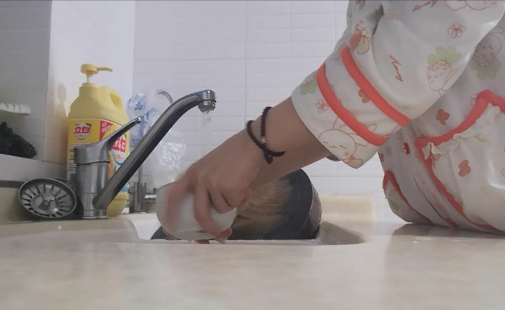 有的同学选择承担起洗碗的工作。有的同学认认真真拖地,保持家里干净卫生。也有人悉心照料绿植花草,也是一项需要细心耐心的家务劳动。