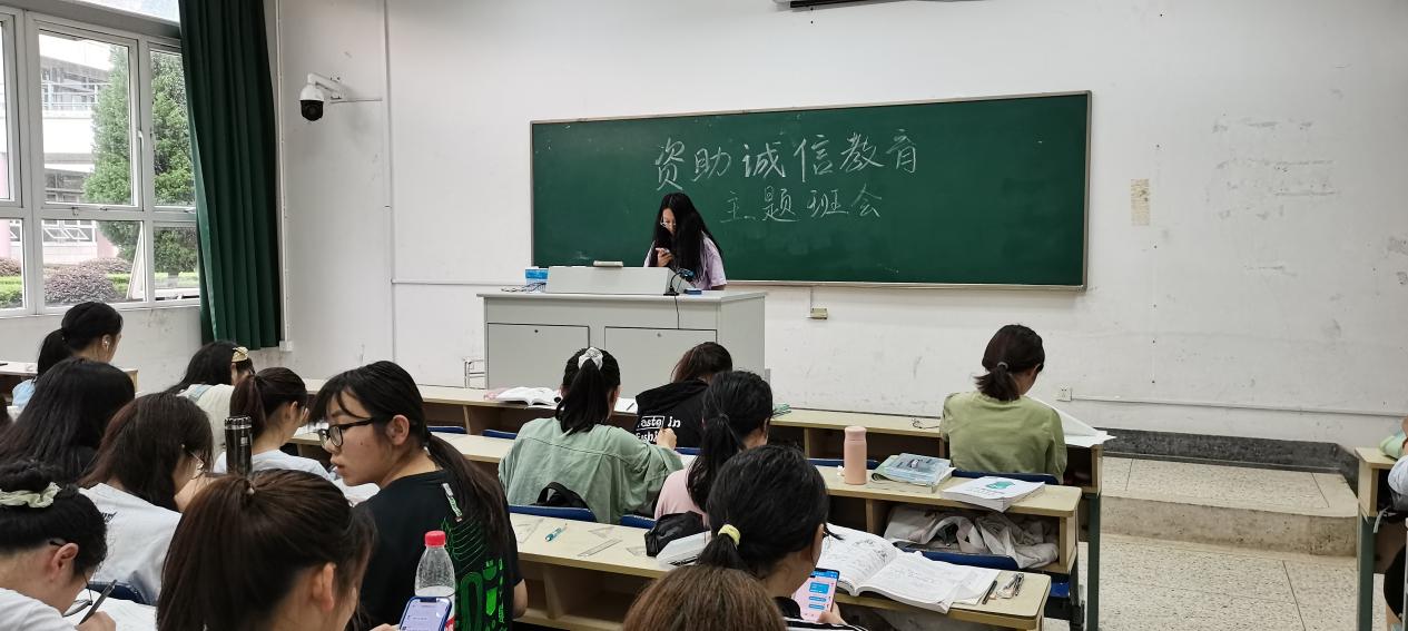 为大力增强青少年员工的诚信意识、责任意识和金融反诈骗意识,开展诚信和征信知识学习教育,预防诈骗、远离不良贷、套路贷等警示教育,引导员工珍爱信用,理性消费,提高他们的征信意识、金融意识、风险意识和法律意识,有效将诚信教育感恩教育转化为老员工的自觉素养与行为,树立正确的消费观、荣辱观、价值观,努力培养德智体美劳全面发展的社会主义建设者和接班人。管理2001班全体成员于5月14日下午17点35分在专二108教室召开关于资助诚信教育主题的班会活动。