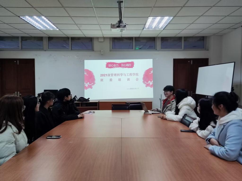 会议开始,主持人介绍活动目的,“班干部是班级中的核心力量与骨干力量,对班级有着强大的凝聚力与号召力,一个班级的工作是否能够顺利开展并取得应有的效果,在相当程度上取决于班干部的模范行为和作风能力。”随后,2021级三个班的班委依次进行了自我介绍,大家进一步加深了了解,会议现场掌声频传、其乐融融。