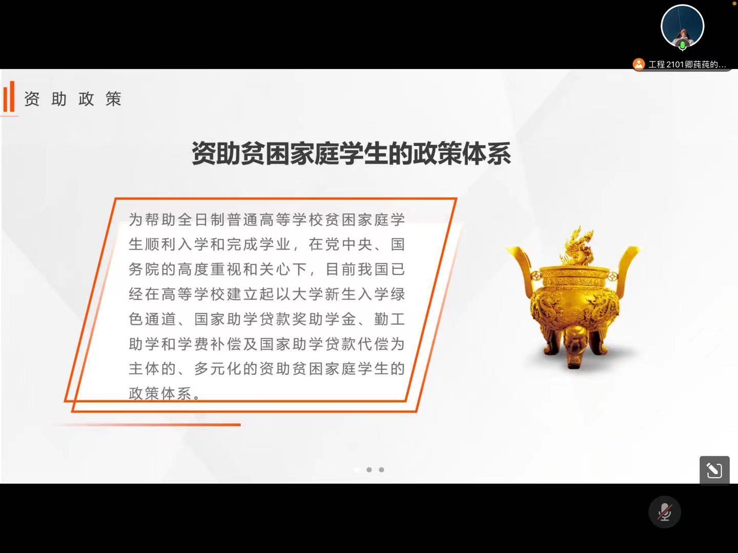 本次班会分为资助政策、诚信资助、立志成才为三个部分。首先是第一部分,主持人卿莼莼同学介绍了资助政策,详细讲解了国家奖学金、国家励志奖学金、国家助学贷款等方面的申请标准及申请条件。