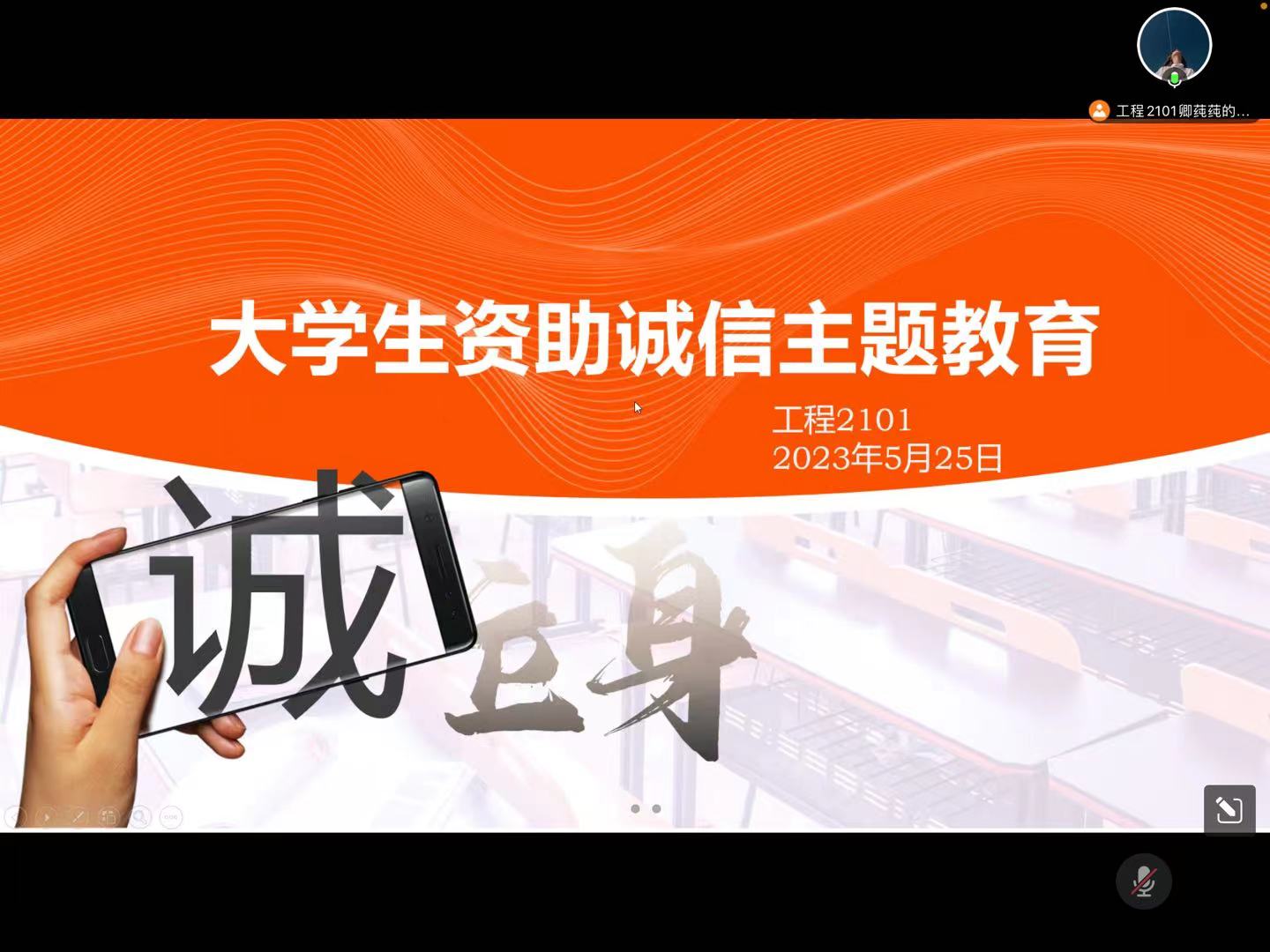 诚信是为人之道、立业之本。为了落实国家资助政策、发挥资助育人功效,5月25日,工程2101班举办了老员工资助诚信主题教育线上班会,班级全体成员悉数参加本次班会。本次班会由组织委员卿莼莼同学主持。