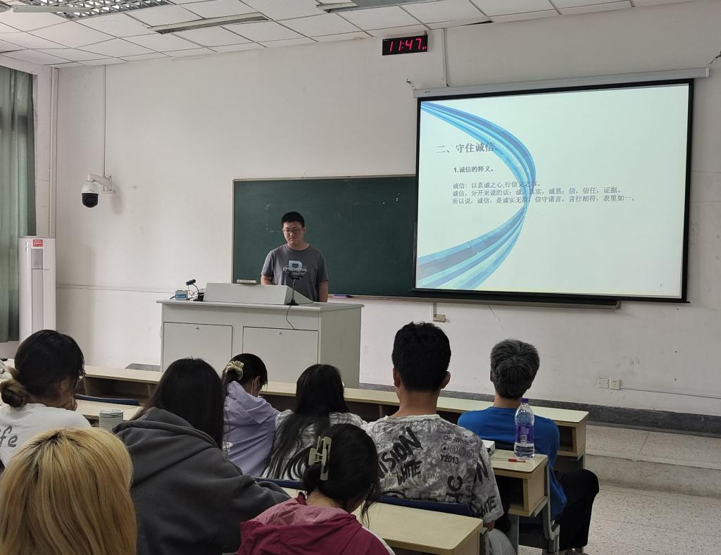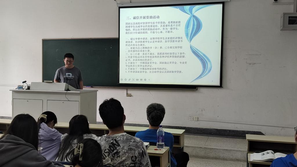 为了增强员工诚信意识、风险意识和感恩意识,引导树立正确的消费观、成才观和价值观。5月18日,工程2201班在Z2-102举办了员工资助诚信教育主题班会。此次班会主讲人是班级生活委员王浩然。