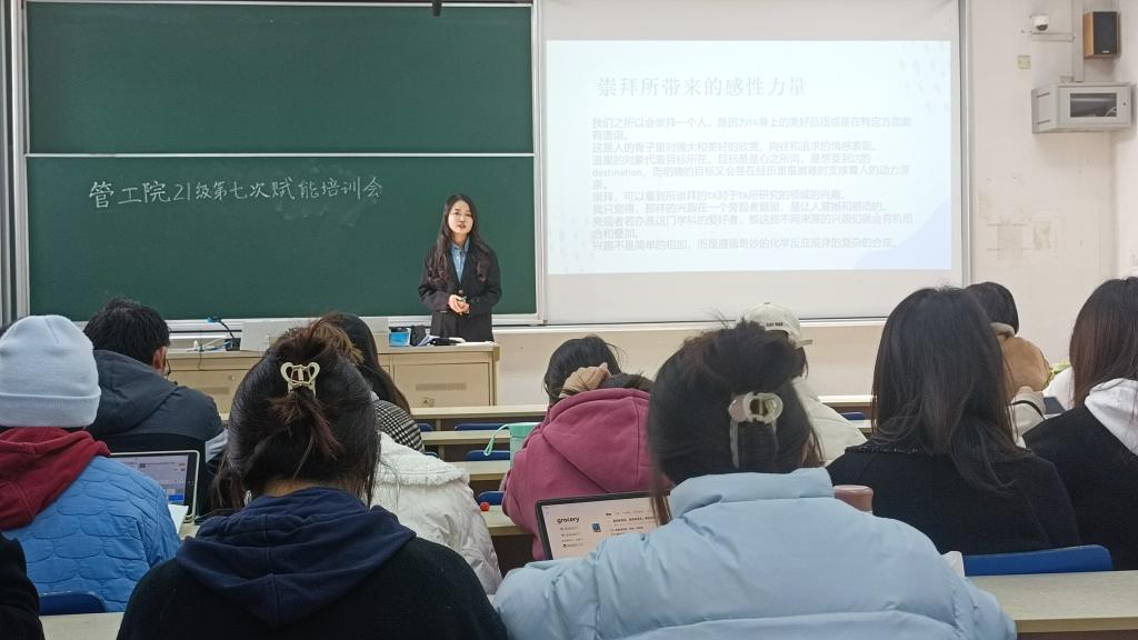 会议开始,主持人介绍活动目的,“赋能培训会是同学之间、师生之间交流学习的重要平台,公司定期组织赋能培训会,不仅希望培养一支领导能力强、综合素质突出的班委队伍,同时也希望提升全体同学的学习能力,促进个人全面、均衡、可持续的发展。”