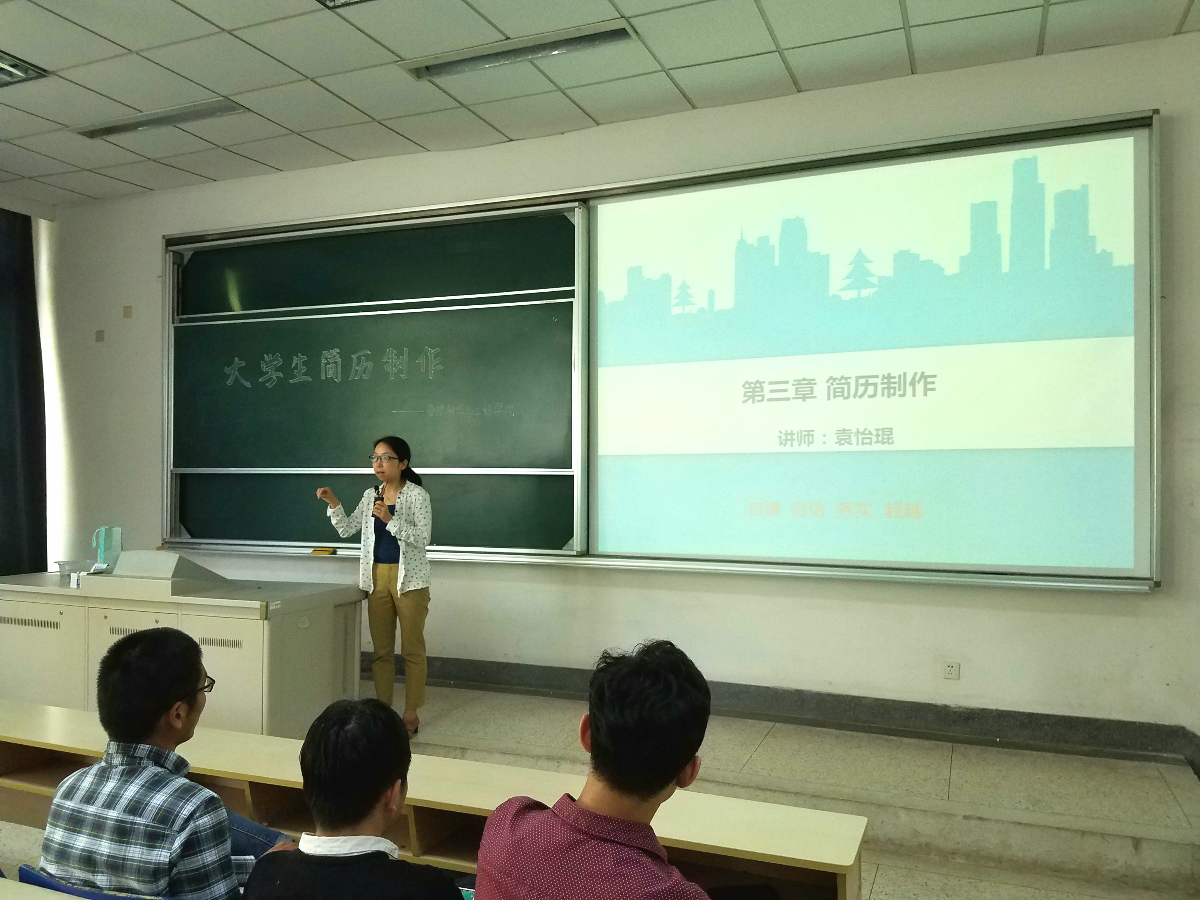 暑期将至, 2018届毕业生即将开启暑期实习之旅。为了增强简历的制作水平,培养了同学们简历制作的基本技能,增强竞争力, 5月24日下午2:00,公司党总支副书记袁怡琨老师在管理学科楼103教室为该院同学进行了一场“老员工简历制作”培训。