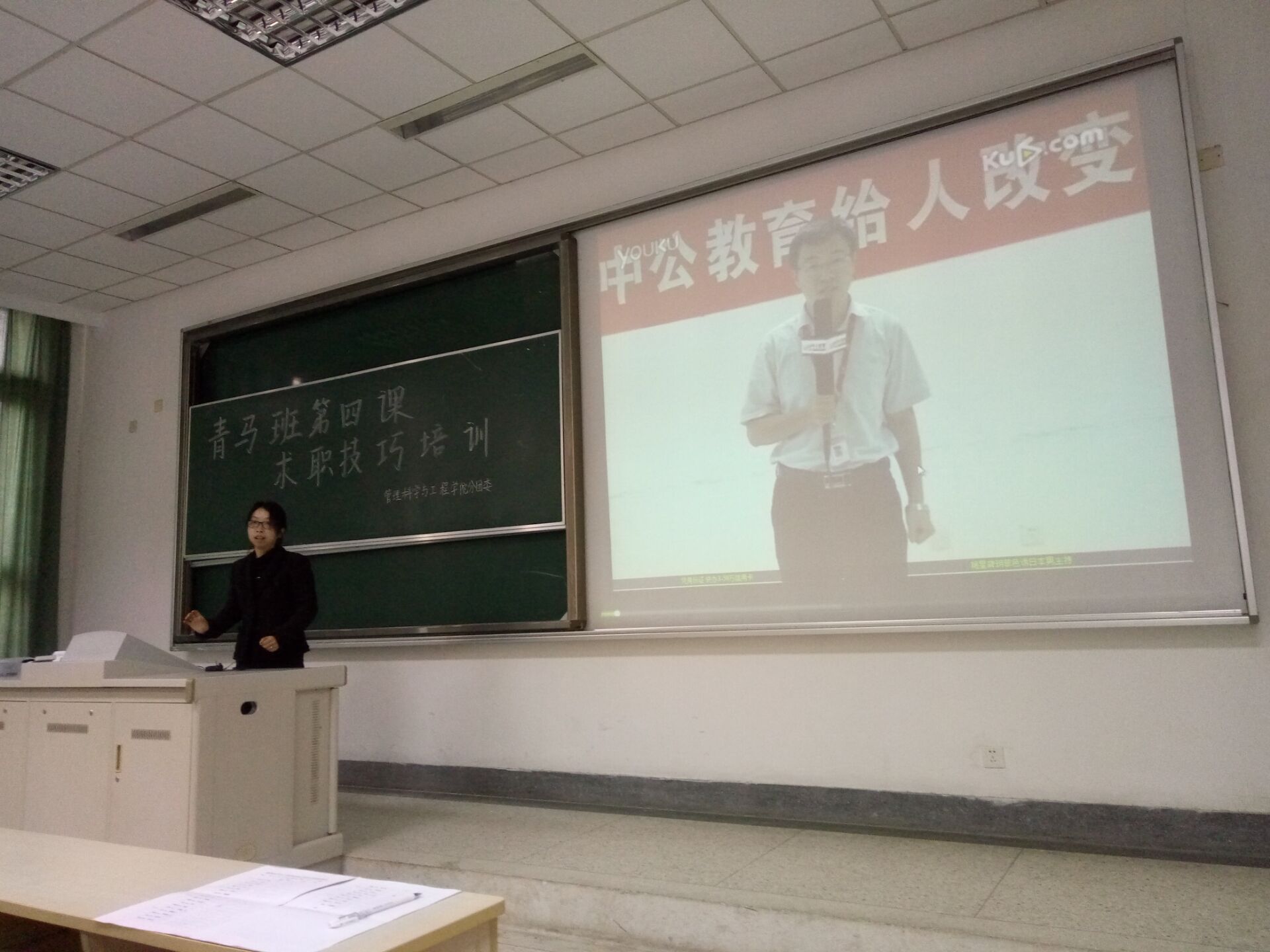 4月8日下午16点45分,XCsports青马班于管理学科楼101教室举办了青马班团课第四课——“敢问路在何方”求职技巧培训。公司党总支副书记袁怡琨老师、青马班全体学员以及分团委全体成员均到场参加。