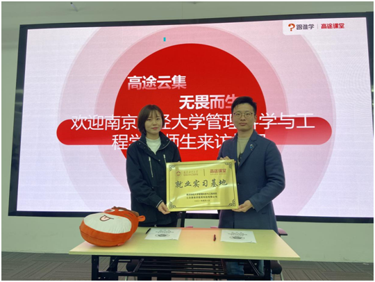 首先,校园招聘部负责人王琦向公司师生进行招聘宣讲,她详细介绍了南京跟谁学|高途课堂的发展过程、企业实力、企业文化、工作环境、招聘岗位和薪资福利等。随后,孙启副书记与招聘部负责人王琦进行了现场交流,并达成了合作意向,举行了签约仪式。