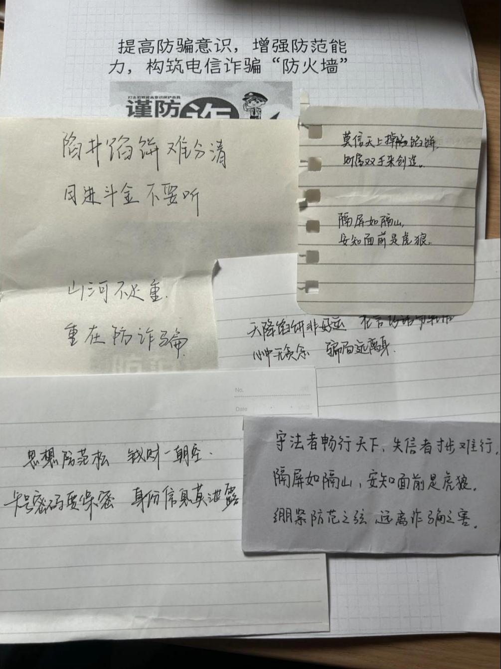 为了加大反诈宣传教育力度,提高员工安全意识,使反诈防诈观念深入人心,公司开展了“防范电信网络诈骗”标语征集活动。自活动开展以来同学们积极参与,创作出了“天上馅饼不相信,小心扫码钱转走”“网络诈骗日翻新,凡是谈钱要小心”“陷阱馅饼难分清,日进斗金不要听”等脍炙人口的宣传口号。评比选出的优秀作品将被制作成宣传物料投放在教学楼,在潜移默化中有效地宣传了校园反诈知识,营造全院共同参与反诈宣传的浓厚氛围。
